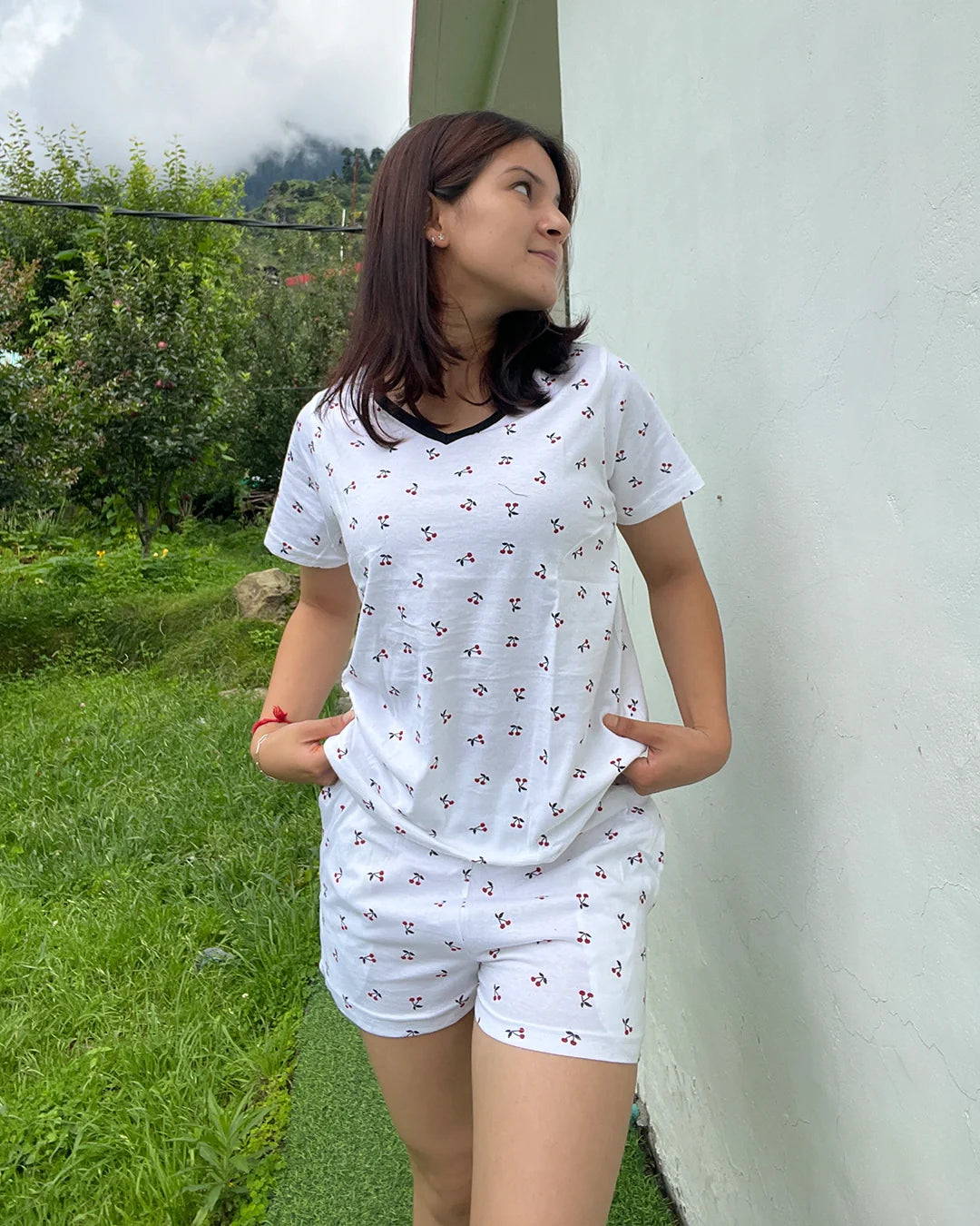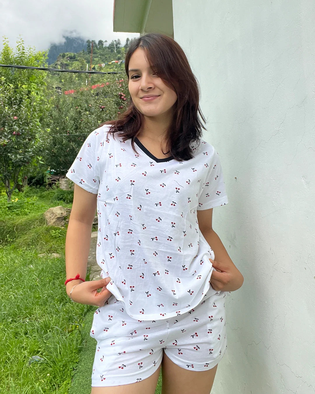 Cherry Cotton Shorts Set