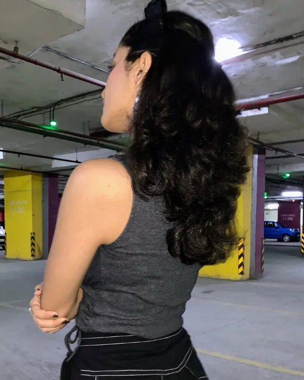 Grey Button Down Crop Top