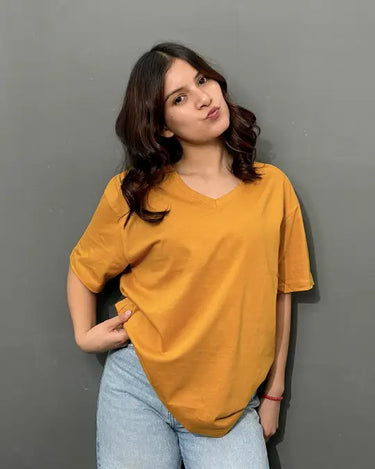 Mustard Plain V-Neck Oversized T-Shirt