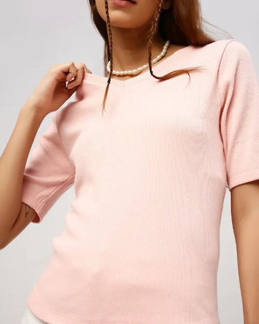 Bonus Hint: It's not just any tee; it's the perfect v-neck ribbed tops for women. But shh, that's our little secret. 😉