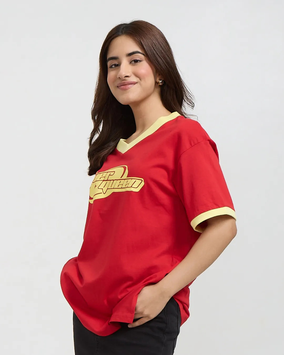 Silver Queen Tap-Out V-Neck Oversize T-Shirt