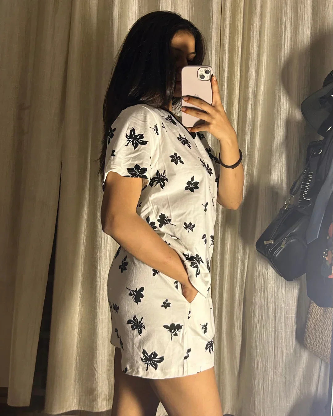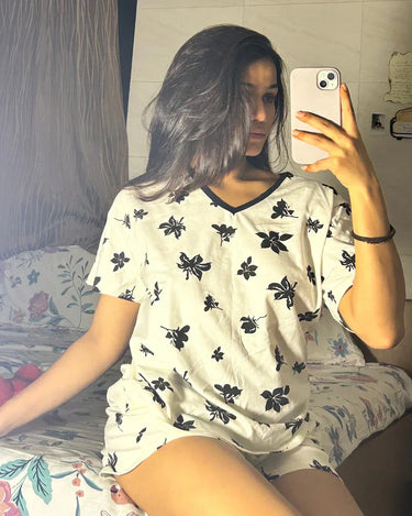 Bonus Hint: It's not just any tee; it's the perfect printed cotton night suit for women. But shh, that's our little secret. 😉