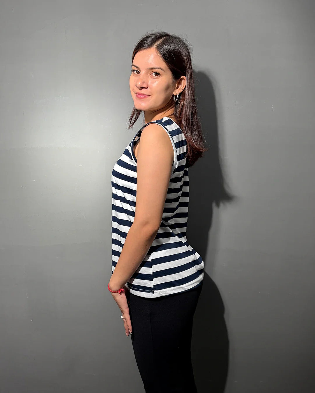 The model is wearing size: Medium