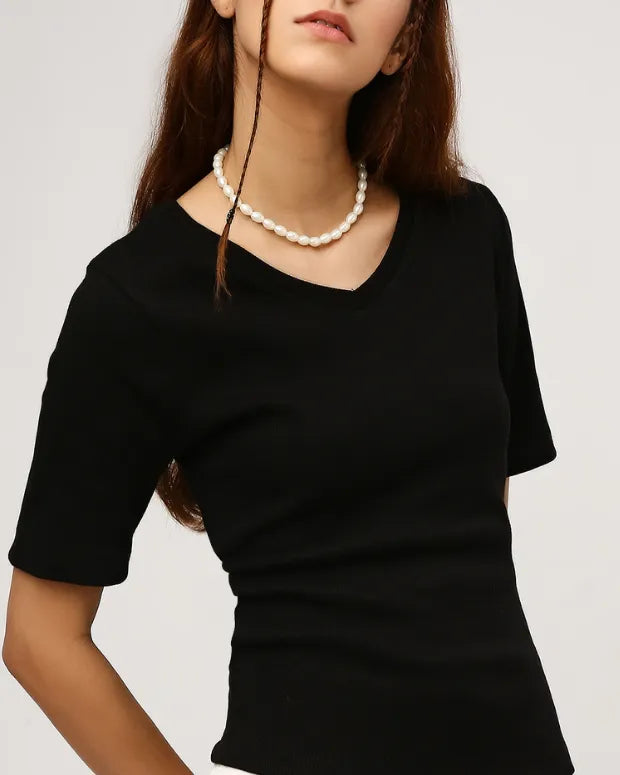 Bonus Hint: It's not just any tee; it's the perfect plain ribbed T-shirt for women. But shh, that's our little secret. 😉