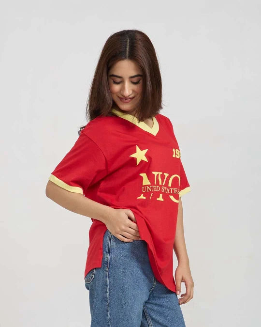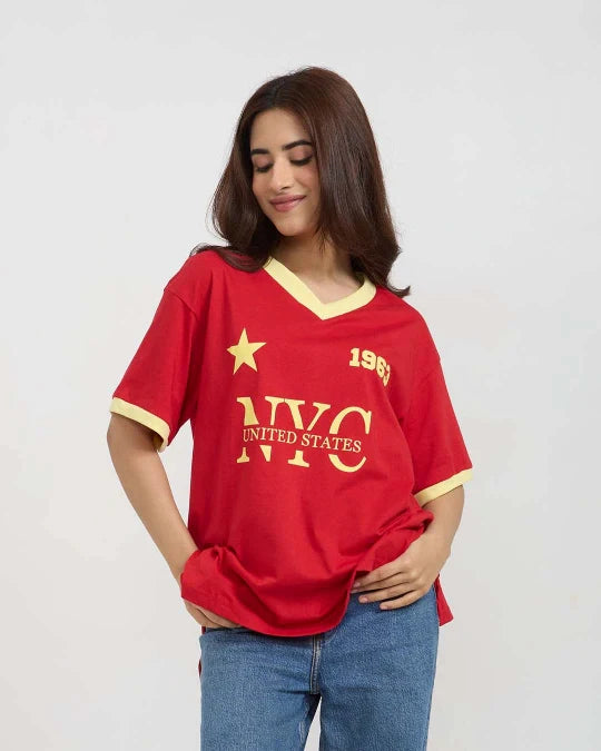 Bonus Hint: It's not just any tee; it's the perfect u-neck oversized printed T-shirt for women. But shh, that's our little secret. 😉