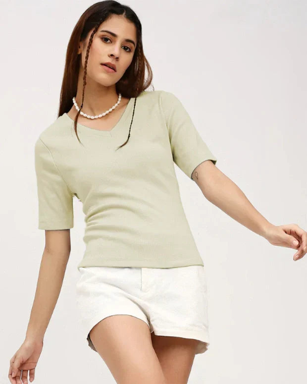 Bonus Hint: It's not just any tee; it's the perfect v neck ribbed top for women. But shh, that's our little secret. 😉