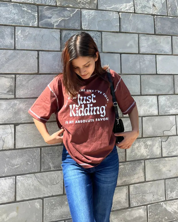 Reverse Weave Just Kidding T-Shirt