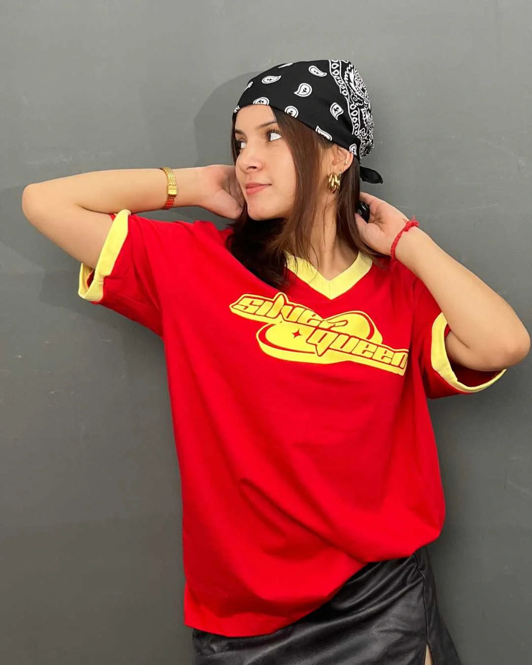 Silver Queen Tap-Out V-Neck Oversize T-Shirt