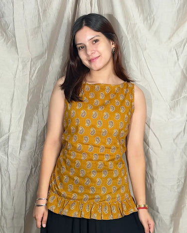 Yellow Sunehri Snatched Short Kurti
